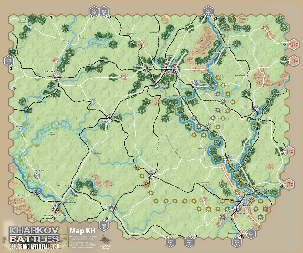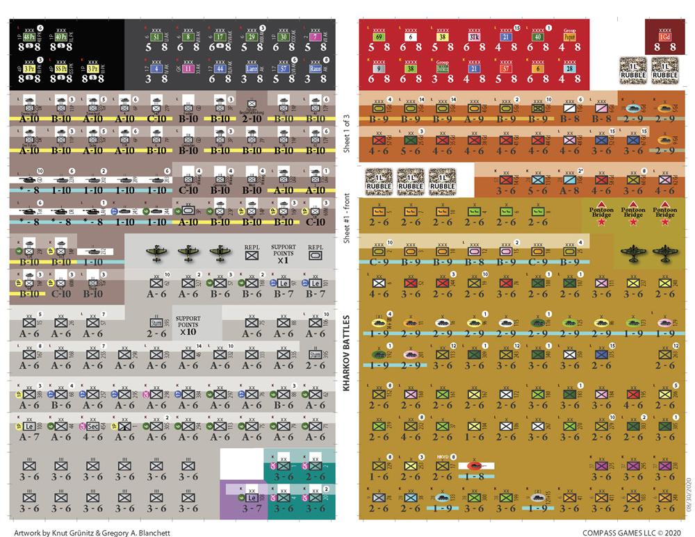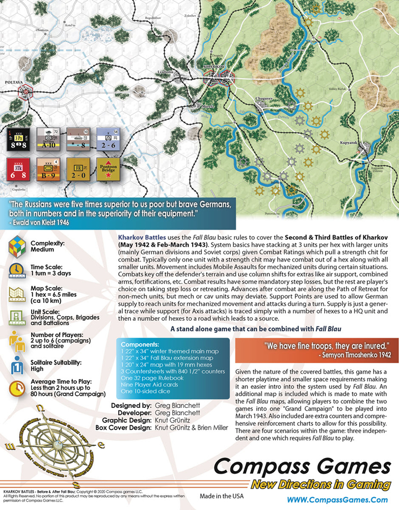 Kharkov Battles utilise les règles de base du jeu Fall Blau pour simuler les deuxième et troisième batailles de Kharkov.