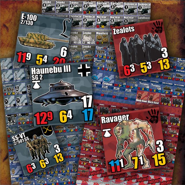 Units represent platoons of vehicles like T64 or King Tiger tanks, infantry, or helicopters. The platoons are grouped into formations and lead by a commander. The formations are activated by chit draw, and better-trained, better-led units can activate more than once in a turn, moving, shooting, and fighting in each activation. On the flip side of a coin, there is no guarantee that a formation will activate even once.