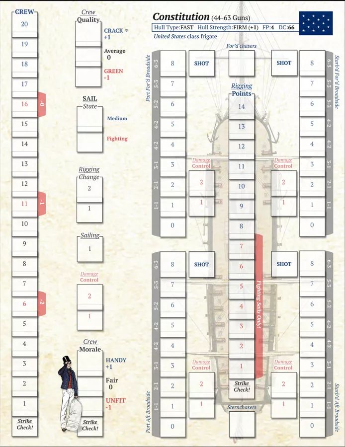 Le jeu comprend dix scénarios, dont des engagements classiques tels que le Constellation contre L'Insurgete (9 février 1799), le Constitution contre Guerrier (19 août 1812) et le Chesapeake contre Shannon (1er juin 1813). Même les navires qui n'ont pas participé à un engagement majeur ont la possibilité de jouer une occasion historique manquée. De plus, les joueurs trouveront facile de créer des paires hypothétiques pour voir ce qui pourrait se passer.