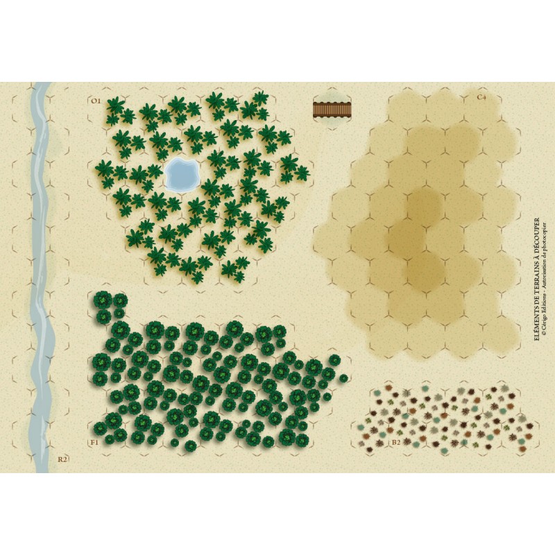 Des éléments de terrain à découper sont également proposés afin de varier les rencontres. Aucune partie de Champs de bataille ne ressemblera à une autre.