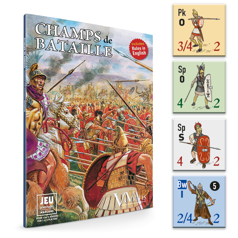 Champs de bataille est un jeu sur carte largement inspiré d’une règle anglaise pour figurines appelée De Bellis Multitudinis éditée par le Wargames Research Group au début des années 1990, quatre livrets de listes d’armées allant de 3000 avant J.-C à 1500 accompagnent cette règle.