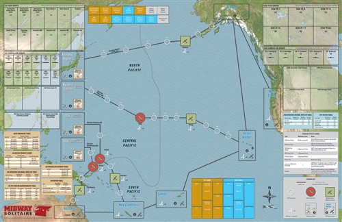 Midway Solitaire suit la campagne du théâtre d'opérations du Pacifique d'avril à juin 1942. Cette période a vu les Japonais prendre l'offensive dans deux campagnes majeures, dont les batailles de la mer de Corail et de Midway, toutes deux décidées par des actions de porte-avions. Vous commandez la marine américaine et les forces alliées tandis que le système de jeu contrôle la marine impériale japonaise. Vous jouez le rôle de l'Amiral Nimitz en termes d'options disponibles et de décisions à prendre pour repousser l'avancée de la marine japonaise dans le Pacifique. Vous devez vaincre de multiples offensives navales, chacune possédant un nombre supérieur d'hommes. La clé de la victoire est d'équilibrer vos ressources limitées pour faire face aux menaces qui se présentent au cours du jeu. Le cours de la guerre dans le Pacifique est en jeu.