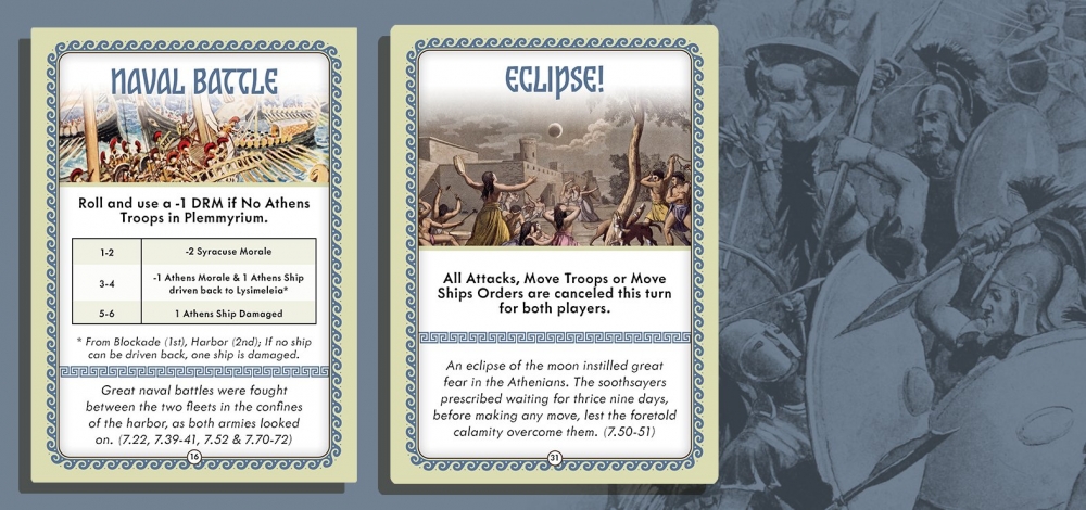 - 2 jeux de cartes solitaire (un jeu par armée)*Un seul jeu de cartes solitaire en 414BC Syracuse