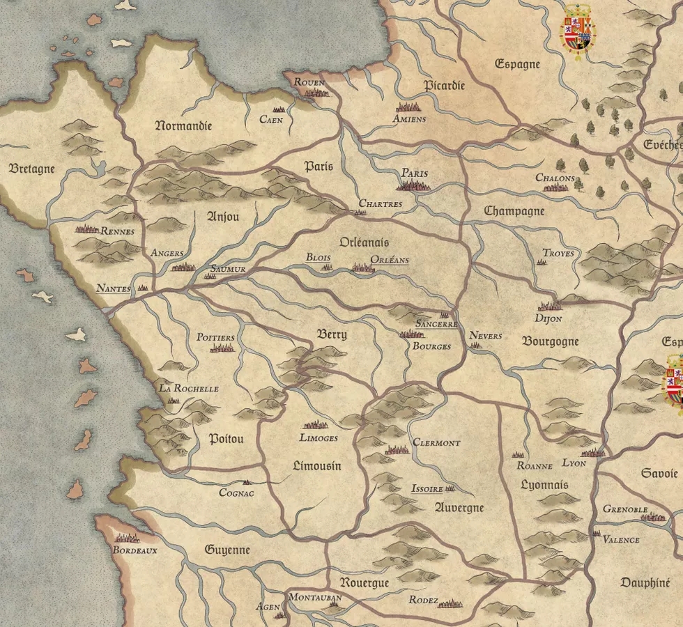 Huit guerres successives eurent lieu entre les derniers Valois (Charles IX et Henri III) et les Huguenots soutenant la réforme ainsi que la Ligue avec un Catholicisme intransigeant soutenue par l’Espagne.