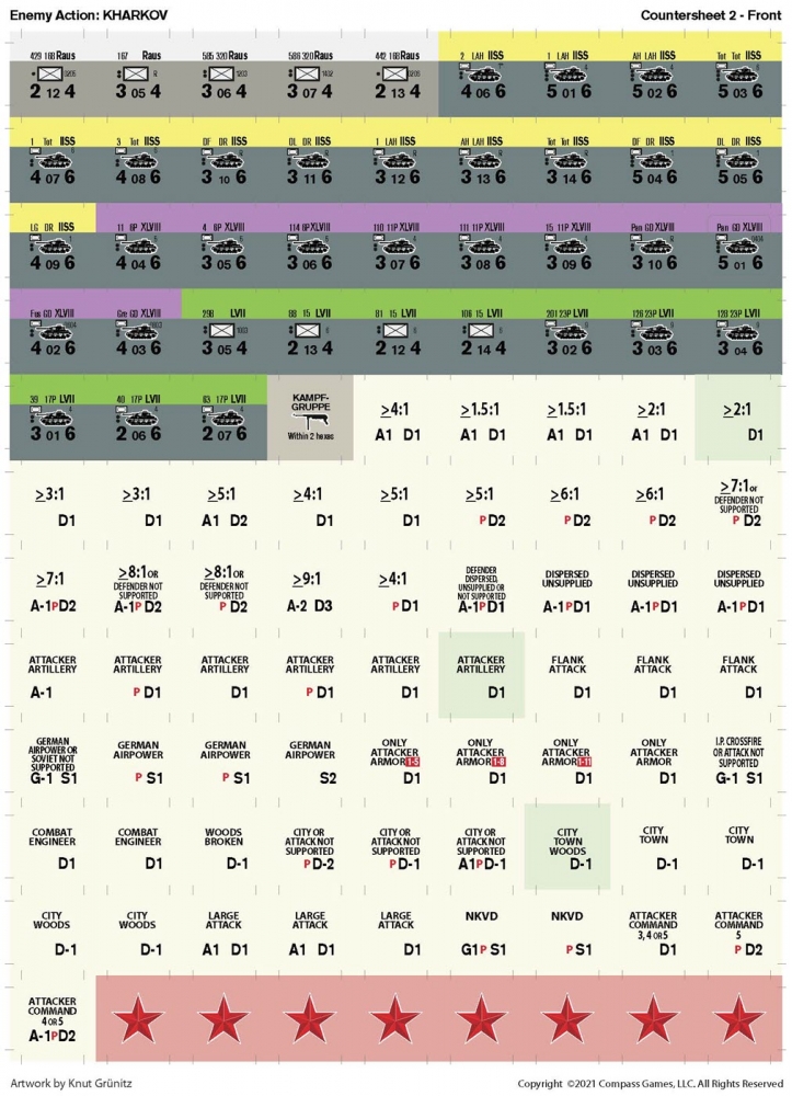 Enemy Action : Kharkov est le deuxième jeu de la série Enemy Action de John Butterfield, une série de jeux pilotés par cartes simulant des batailles cruciales de la Seconde Guerre mondiale. Il peut être joué par deux joueurs ou par un seul joueur contrôlant l'un ou l'autre camp.