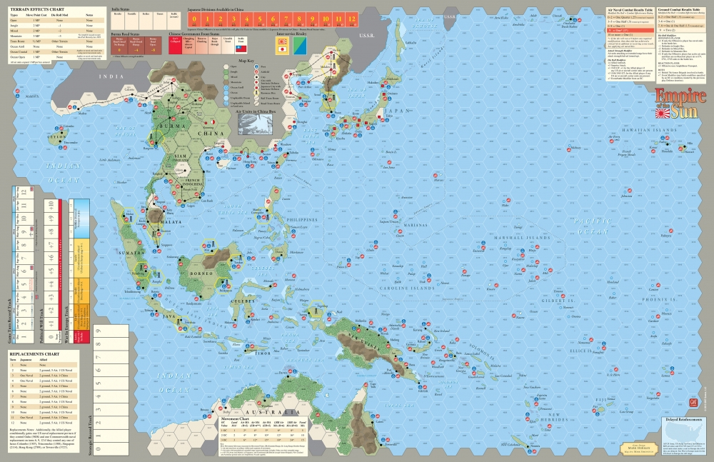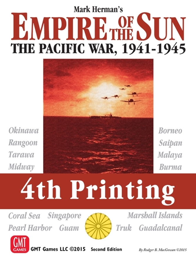 Empire of the Sun (EotS) est le troisième projet de Mark Herman basé sur des cartes depuis qu'il a introduit le système dans le hobby avec We The People. EotS est un regard stratégique sur l'ensemble de la guerre du Pacifique, depuis l'attaque de Pearl Harbor jusqu'à la capitulation du Japon. EotS est le premier jeu basé sur des cartes (CDG) à rapprocher le système d'un wargame classique à hexagones, tout en conservant toute la tension et l'incertitude que les gens attendent d'un CDG. Les joueurs jouent le rôle de MacArthur, Yamamoto, Nimitz et Mountbatten et dirigent leurs forces sur toute la largeur du globe, de l'Inde à Hawaï et de l'Alaska à l'Australie. Le tout est représenté sur une seule carte basée sur une projection à surface égale de 1942 de l'ensemble du théâtre du conflit.
