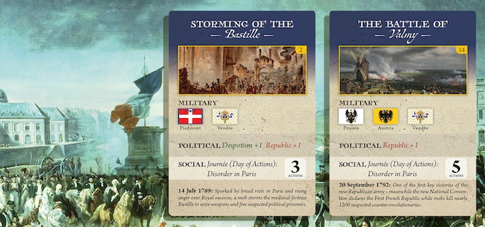 Ce jeu de solitaire, adapté au jeu coopératif, raconte l'histoire de la Révolution française à travers ses événements clés et ses points de décision. Vous devez arrêter l'avancée des armées étrangères et les forces contre-révolutionnaires en France même pour défendre les vertus du républicanisme.