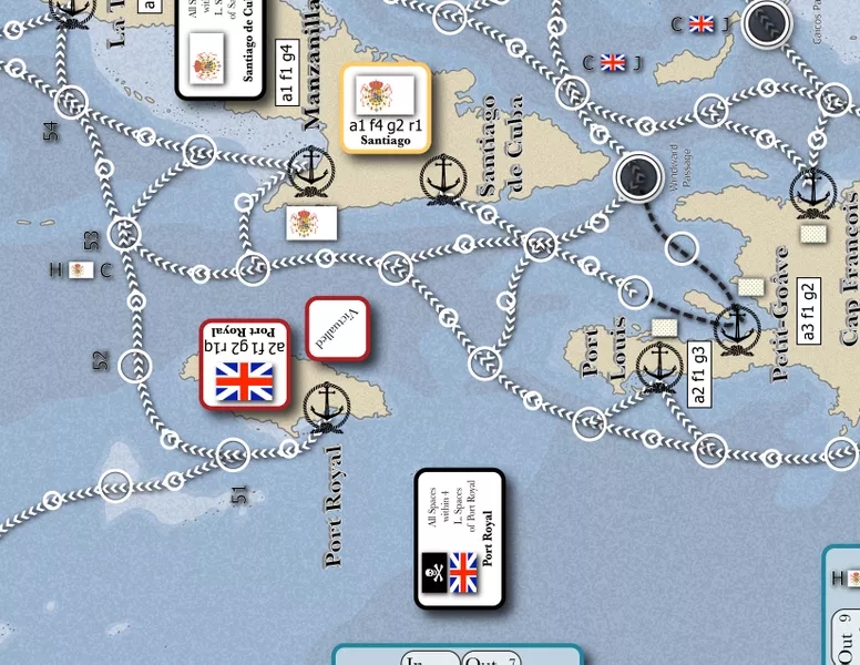 Le combat, bien qu'abstrait, prend en compte le leadership, la classe et la condition de vos navires, et bien sûr la jauge météo. À l'ère de la voile, les conditions de vent et d'eau sont cruciales, même au niveau "opérationnel". Le mouvement utilise un système de point à point où les coûts changent avec le vent et vous serez souvent incapable d'aller où vous le souhaitez. Les actions sont "simultanées", mais contrairement à de nombreux jeux navals, le traçage n'est pas nécessaire.