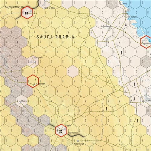 Saddam Moves South est un wargame à deux joueurs de niveau opérationnel couvrant une hypothétique invasion irakienne de l'Arabie Saoudite en 1990. L'hypothèse est qu'après que l'armée irakienne ait envahi le Koweït au cours de la première semaine d'août 1990, Saddam Hussein a poursuivi l'offensive pour s'emparer des champs pétrolifères vitaux de l'Arabie Saoudite. En réponse, les États-Unis prennent la tête d'une coalition d'États pour arrêter les Irakiens et reprendre les territoires perdus. Le système de jeu est basé sur celui de Desert One War, qui modélise les opérations terrestres, aériennes et amphibies. Pour la coalition, le système de jeu central est celui des points de transport aérien (ATP) qui représentent la capacité de transport aérien stratégique. Chaque hexagone de la carte représente 35 kilomètres d'un côté à l'autre. Chaque tour de jeu représente une période allant de trois jours de combat intense à dix jours de ravitaillement. Les unités terrestres représentent des régiments, des brigades, des divisions et des groupes d'irréguliers. Les forces d'opérations spéciales (SOF) représentent des activités de guerre non conventionnelle. Les unités aériennes représentent de un à quatre escadrons, en fonction de la qualité de la force aérienne et du rythme des opérations.