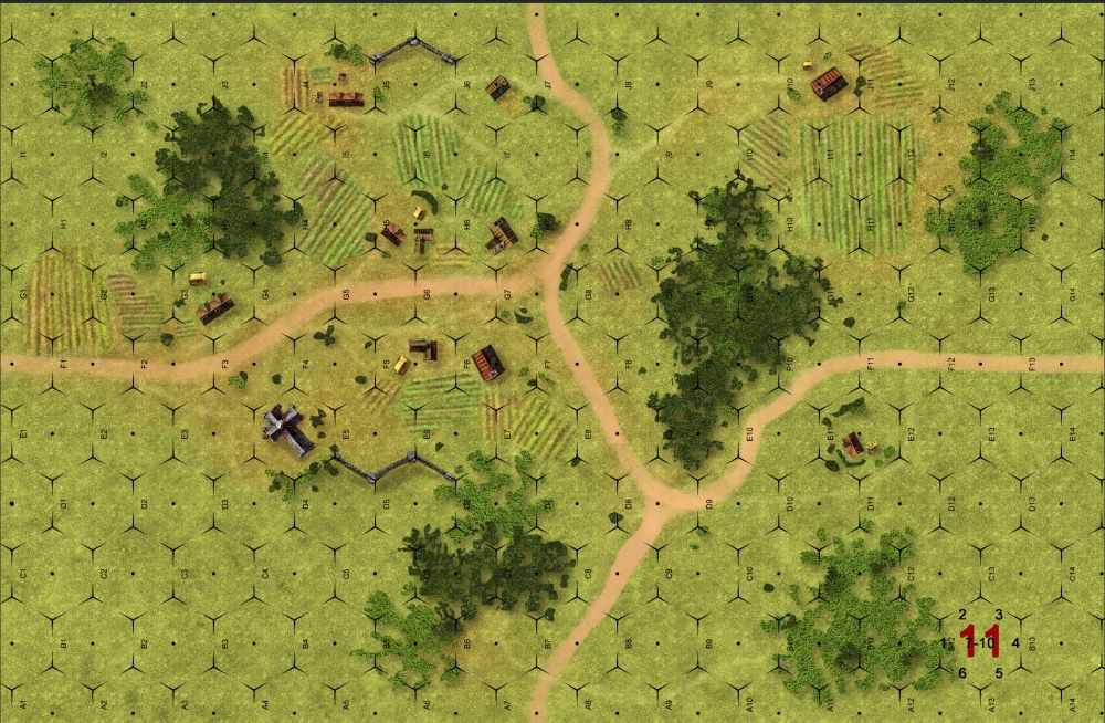 Simultanéité vs Séquence : Dans les combats de petites unités, les choses se déroulent simultanément. Lors d'une attaque sur une position ennemie, certaines unités d'une formation fournissent un feu de couverture pour supprimer l'ennemi, tandis que d'autres unités manœuvrent contre la position ennemie. Ces actions se déroulent simultanément. Mais dans la plupart des jeux tactiques actuels, les tirs d'opportunité sont séquentiels et sont généralement représentés par le joueur en phase qui déplace une unité ou une pile d'unités d'un seul hexagone à la fois, donnant ainsi au joueur qui n'est pas en phase la possibilité de tirer. Il se déplace ensuite dans l'hexagone suivant, donnant à nouveau au joueur qui n'est pas en phase l'occasion de tirer, etc. Une fois qu'il a fini de déplacer une unité ou une pile d'unités, il en sélectionne une autre et répète le processus jusqu'à ce qu'il ait déplacé toutes ses unités. Non seulement cela prend beaucoup de temps, mais c'est aussi souvent irréaliste. Tout d'abord, le joueur en phase peut ajuster son mouvement en fonction du résultat du tir d'opportunité. En réalité, toutes ces choses se produisent en même temps. Les unités de chaque joueur se déplacent et tirent simultanément et ne peuvent pas savoir ou voir où l'ennemi a manœuvré. Dans The Last Hundred Yards, le mouvement simultané et le tir d'opportunité sont modélisés principalement par le cycle d'action/réaction et la mécanique de tir.