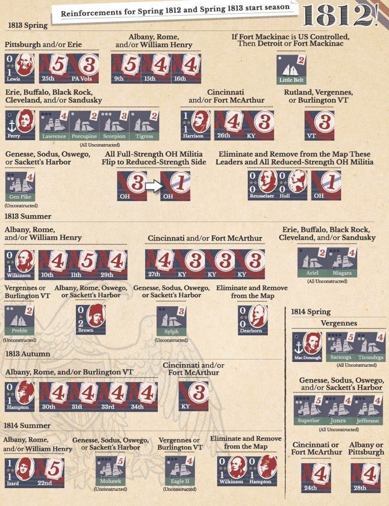 1812 ! War on the Great Lakes Frontier se joue sur des cartes représentant les Grands Lacs et les colonies creusées dans les forêts sauvages de l'ancien Nord-Ouest. Les deux joueurs s'engagent dans une course à l'armement naval pour construire de nouveaux navires de guerre à partir des forêts environnantes afin d'augmenter leurs flottes d'origine. Les commodores et les équipages américains inexpérimentés affrontent les vétérans de la Royal Navy et participent au premier engagement de la flotte américaine lors de la bataille du lac Érié, le seul cas où une flotte britannique entière s'est rendue.