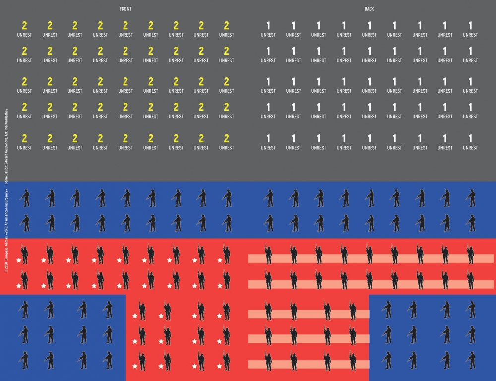 De nombreux mécanismes de jeu sont familiers des simulations de contre-insurrection existantes. Les ressources et les opérations dont disposent les deux joueurs sont différentes ; l'insurrection est décrite comme un conflit asymétrique. Le jeu est basé sur des cartes, mais les événements décrivent des situations qui peuvent survenir dans le contexte américain. Par exemple, en cas de guerre civile, la Cour suprême est susceptible de prendre des décisions qui affectent le conflit. Il existe donc des cartes SCOTUS concernant le deuxième amendement et la capacité du gouvernement à procéder à des arrestations. Parmi les autres caractéristiques typiquement américaines, citons les relais routiers en tant que réseaux d'information, les événements liés à la brutalité policière et le complexe sport-spectacle.
