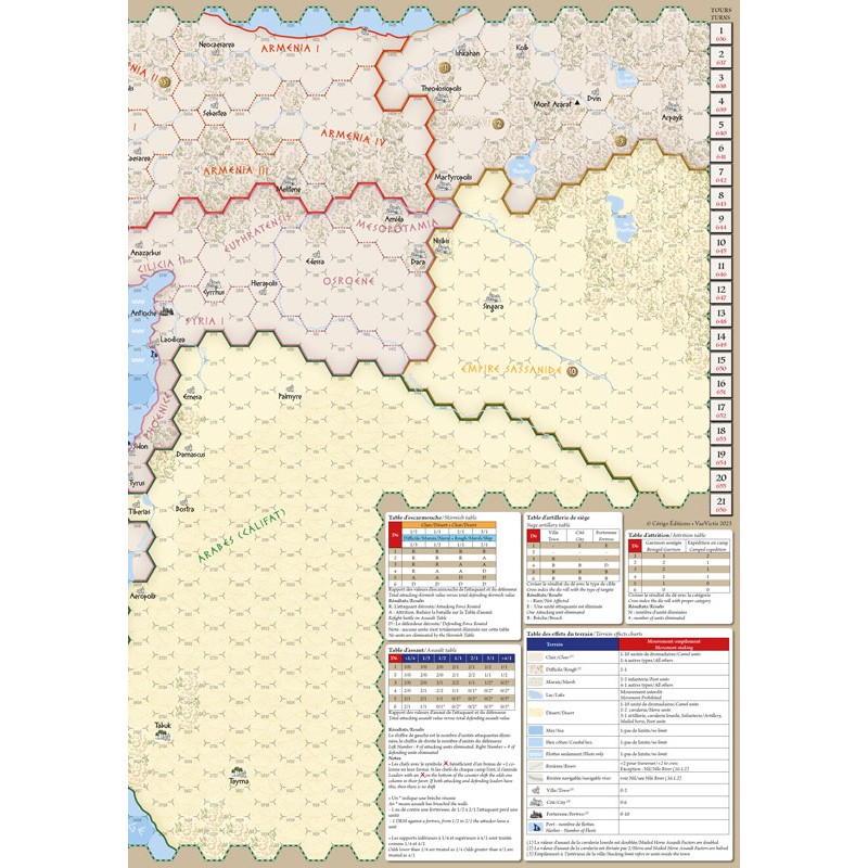 Le joueur arabe doit, lui, sécuriser le terminus syrien de la route commerciale de la Mecque mais aussi s’emparer du grenier à blé égyptien et peut-être même de Constantinople.