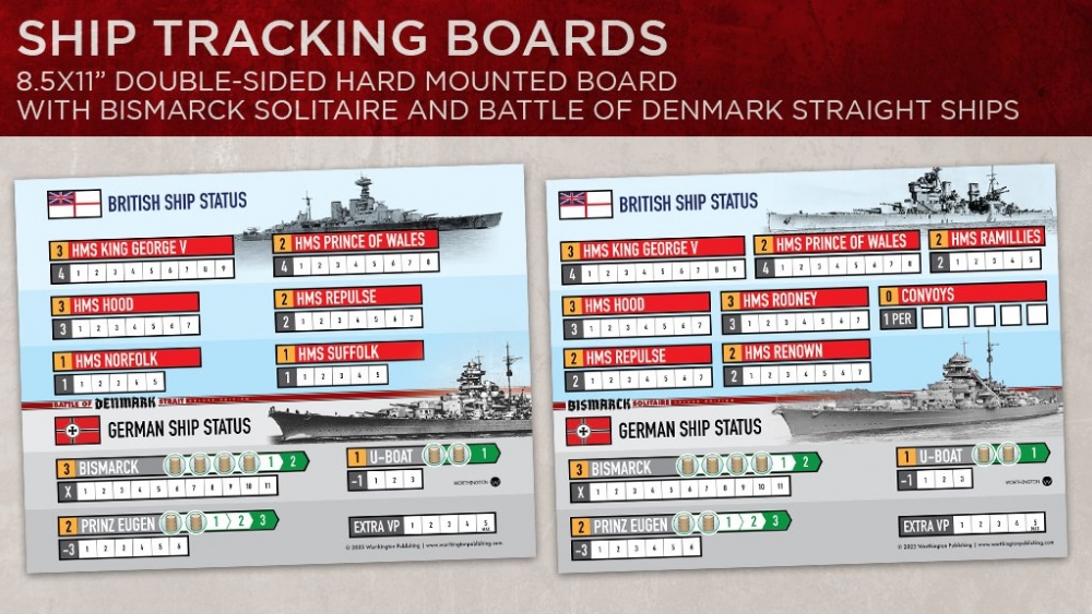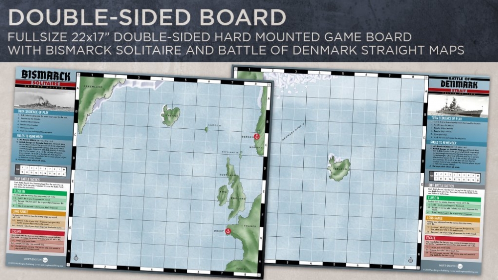 Le jeu est livré avec un plateau de jeu double face aux graphismes améliorés. Un côté du plateau représente l'Atlantique Nord à un niveau stratégique avec ses convois et tous les navires de guerre britanniques impliqués dans leur protection contre le Bismarck. L'autre côté du plateau de jeu représente le détroit du Danemark, où le Bismarck doit s'échapper dans l'Atlantique et où les navires britanniques sont là pour l'arrêter avant qu'il ne prenne le large.