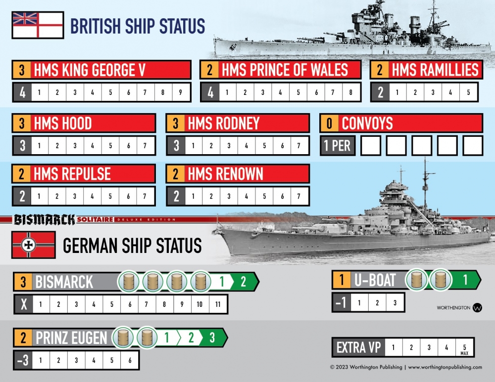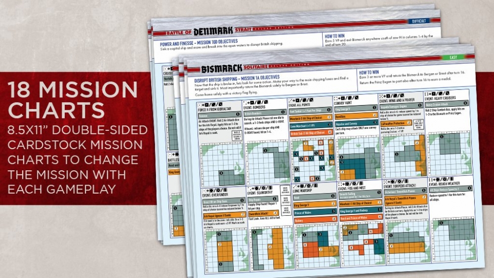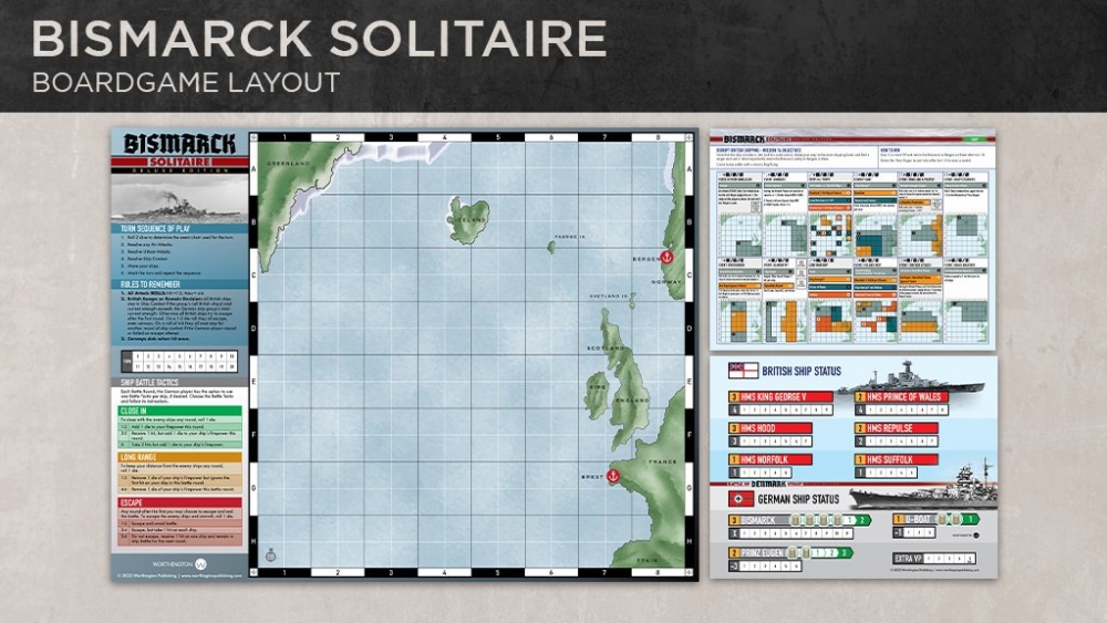 Le jeu de plateau Bismarck Solitaire est basé sur le très populaire livre-jeu Bismarck Solitaire.