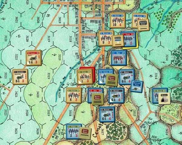 A Most Fearful Sacrifice est un wargame épique pour deux joueurs avec une surface de jeu de plus de 1,4 m2 et 526 pions de jeu représentant les combats qui se sont déroulés pendant les trois jours de cet affrontement décisif. Le jeu utilise un nouveau système d'exploitation ACW appelé le système Black Swan, qui est étroitement lié au système de jeu populaire Blind Swords introduit pour la première fois dans le jeu The Devil's To Pay ! de Tiny Battle Publishing. Cette version du système est spécialement conçue pour gérer des batailles à grande échelle tout en limitant le nombre de règles. Les joueurs peuvent simuler d'énormes rencontres en un temps de jeu raisonnable. Ceci est possible grâce à l'utilisation de tirages de cartes plutôt que de tirages au sort. De plus, les joueurs déclencheront des activations par Corps plutôt que par des formations de niveau inférieur, mais ils devront tout de même prendre des décisions tactiques en déterminant quelles Divisions auront la priorité d'activation. Bien qu'à une plus grande échelle, ce système conserve un aspect tactique et met toujours l'accent sur les trois "FOW" de la guerre ... les Fortunes de la Guerre, les Frictions de la Guerre et le Brouillard de la Guerre. Les joueurs devront faire face à une situation de combat en constante évolution, sans jamais être sûrs de ce que les Dieux de la guerre leur réservent, et ils devront donc toujours être prêts à faire face à des événements historiquement réalistes de type "cygne noir".
