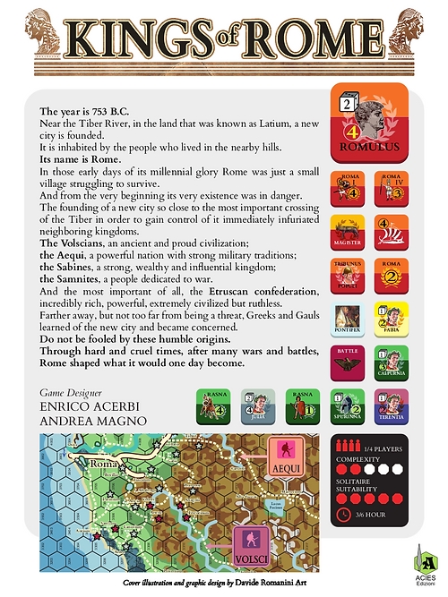 Dans ce jeu, vous vivrez tout ce que Rome a dû endurer, des événements historiques les plus célèbres aux nombreuses guerres qu'elle a menées. Les règles sont faciles à apprendre, mais pas simplistes.