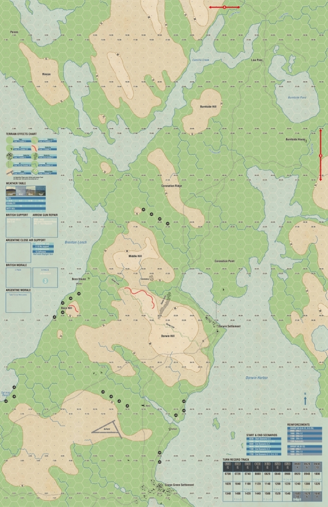 Le joueur argentin dispose de troupes solides avec une artillerie et un soutien aérien raisonnables, mais il doit créer une défense en profondeur contre une force britannique mieux dirigée et habituée à un rythme opérationnel plus élevé et à une plus grande puissance de feu. À chaque tour, il faut prendre des décisions importantes : quand tenir la ligne, quand se retirer, et où engager les quelques réserves restantes pour retarder et éventuellement arrêter l'attaque britannique.