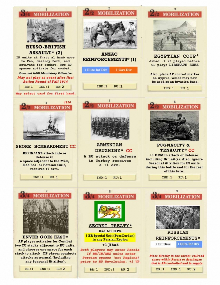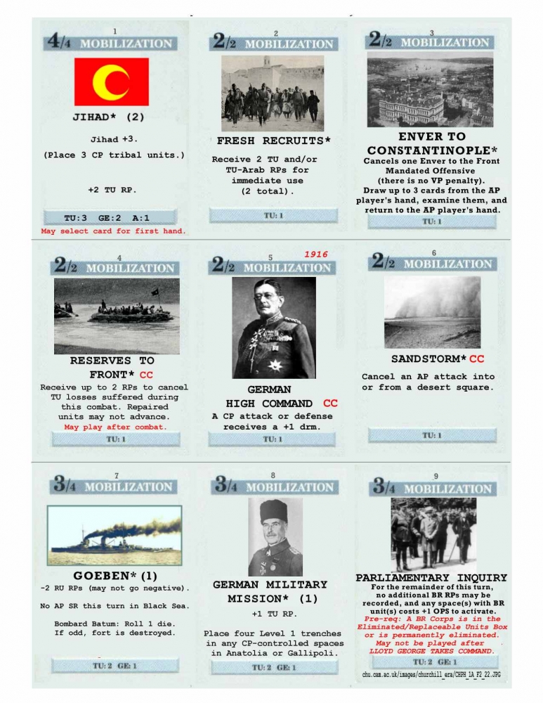 En tant que Britanniques, vous devez tenir bon pendant que vos alliés russes percent les lignes turques dans le Caucase et mettent vos forces à contribution par le biais d'une invasion et d'un renforcement progressif de la puissance impériale. En tant que Turcs, votre objectif est de remporter une victoire complète dès le début, en unissant vos forces à celles de l'Allemagne et en paralysant l'Empire britannique en Égypte et en Inde OU de persévérer.