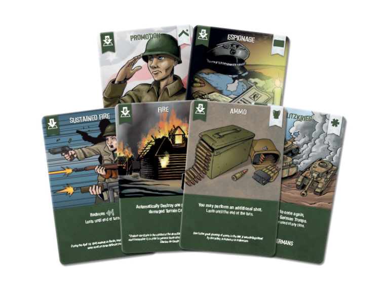 De plus, votre deck comprendra des événements que vous pourrez utiliser en votre faveur ou contre votre adversaire. Champs de mines, tirs chanceux, atterrissages de parachutistes et bien plus encore.