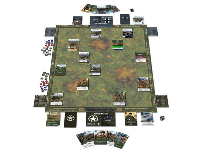 - 330 cartes, plus de 100 marqueurs et un nouveau plateau de jeu correspondant au terrain normand.