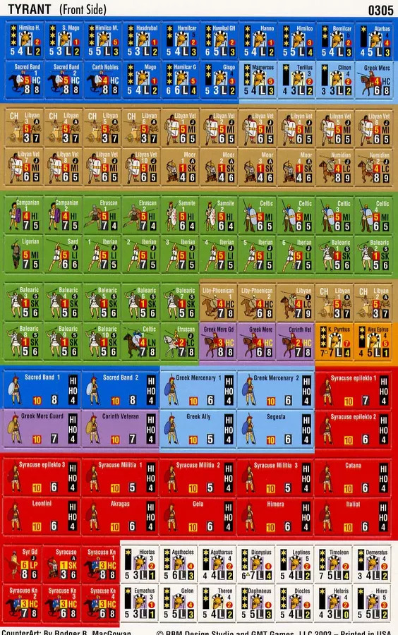 Tyrant est une simulation tactique des combats entre les armées de Carthage et de Syracuse, entre 480 et 276 av. J.-C. Pour jouer à Tyrant, vous aurez besoin de Great Battles of Alexander - Expanded Deluxe Edition pour les cartes, les règles de base et quelques pions. Tyrant peut également être joué avec les règles de Simple Great Battles of History.