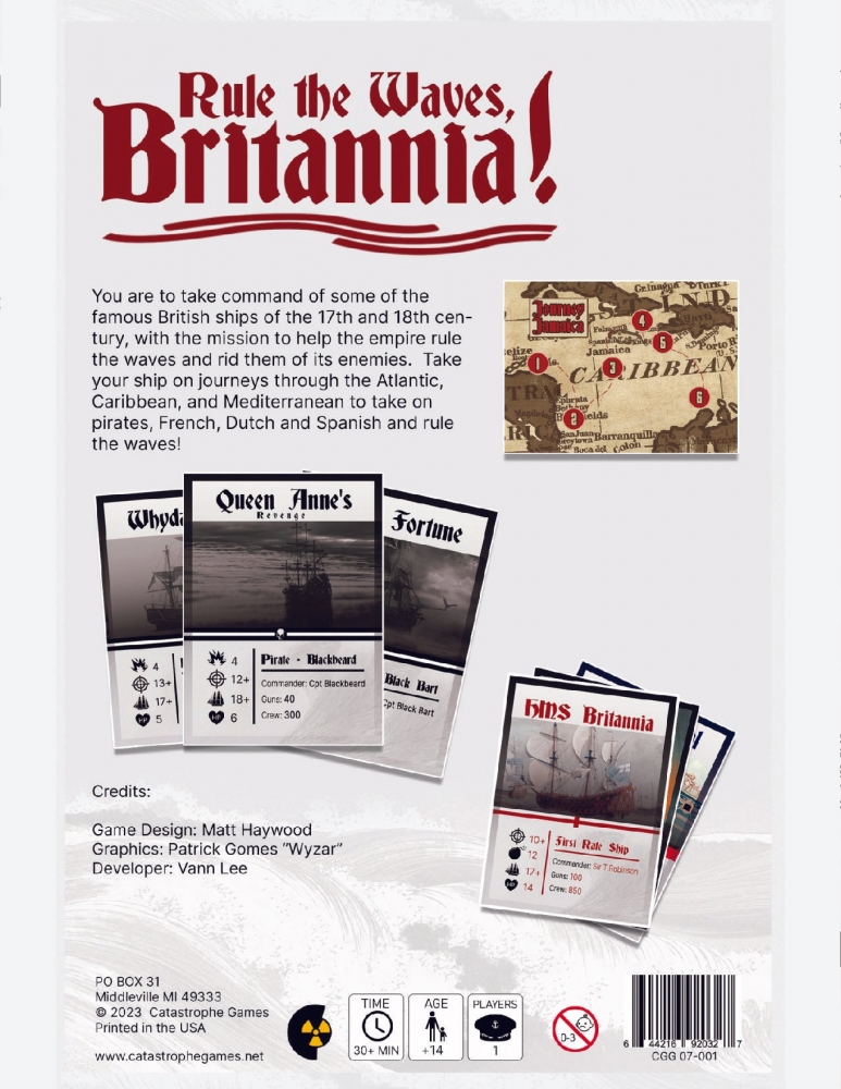 Rule the Waves, Britannia! est un jeu de cartes de guerre navale pour 1 ou 2 joueurs. Les pirates ont infesté les mers de l'Empire britannique. Vous rangerez-vous du côté de la liberté ? Ou du côté de la Reine ? À vous de choisir...