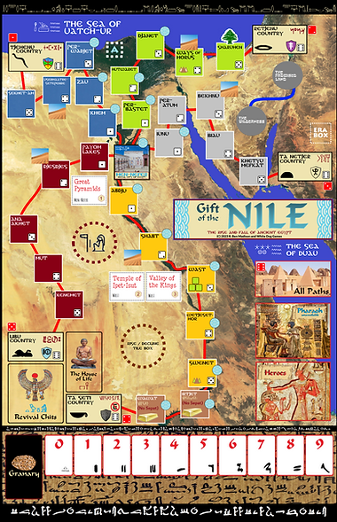 GIFT OF THE NILE est un jeu en solitaire dans lequel vous incarnez les pharaons des nombreuses dynasties régnantes de l'Égypte ancienne à partir de 2686 av.J.-C.