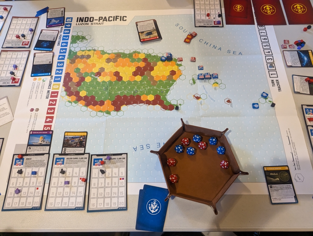 Les unités du jeu représentent les capacités actuelles et futures des projets de l'US Marine Corps / US Navy et de la Marine et du Corps des Marines chinois (PLAN/PLANMC). Le jeu met l'accent sur la coordination au sein des équipes afin de trouver et d'engager l'ennemi par des moyens cinétiques (comme les missiles) et non cinétiques (comme la cybernétique). Plus de 200 cartes de capacités interarmées (JCC) représentent un large éventail de capacités interarmées et adverses. Cela inclut les cyber-attaques, les opérations d'influence, les frappes de bombardiers, les sous-marins, les catalyseurs clés, etc.