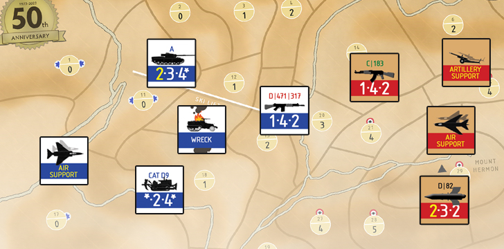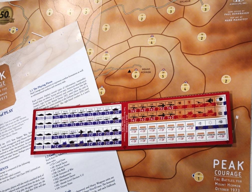 Peak Courage commémore et examine cette petite bataille désespérée avec 8 pages de règles, 80 pions pré-découpées et une carte de 28x43 cm.