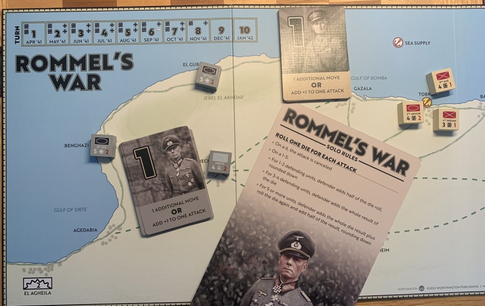 ROMMEL'S WAR est un jeu pour deux joueurs qui simule la première année de la guerre dans le désert, de mars 1941 à janvier 1942. Un joueur joue le rôle de Rommel, qui commande les forces de l'Axe, et l'autre joueur joue le rôle des commandants britanniques (Wavell et Auchinleck).