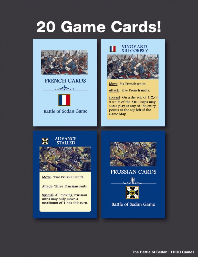 Battle of Sedan est un jeu tactique de complexité faible à moyenne qui couvre le désastre français à Sedan pendant la guerre franco-prussienne. Un joueur commande les forces combinées prussiennes et bavaroises tandis que l'autre joueur commande l'armée française.