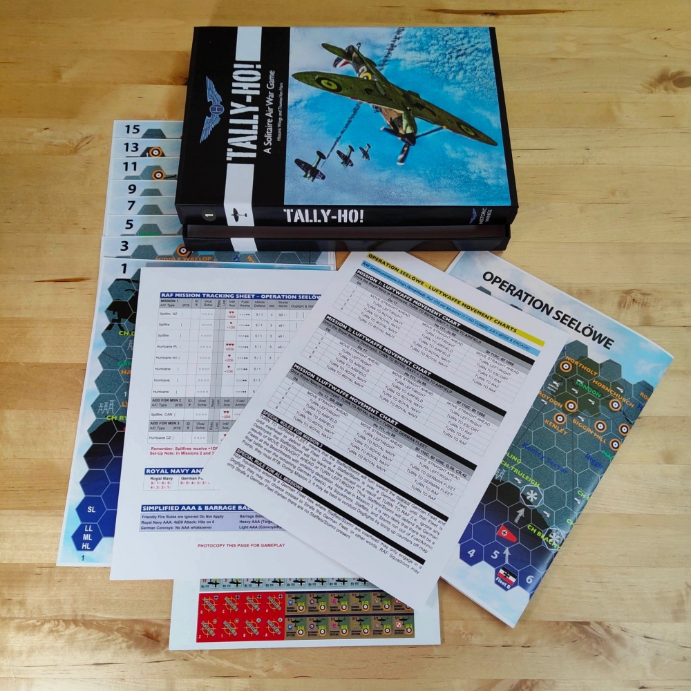 Tally-Ho! est un jeu de guerre aérienne en solitaire sur la bataille d'Angleterre. Ce conflit s'est déroulé dans le ciel de l'Angleterre au cours de l'été 1940, entre la Royal Air Force britannique et la Luftwaffe allemande pendant la Seconde Guerre mondiale. Afin d'ouvrir la voie à l'invasion de l'Angleterre prévue par Hitler, l'opération Seelöwe, les Allemands devaient d'abord s'assurer la supériorité aérienne en détruisant la Royal Air Force.