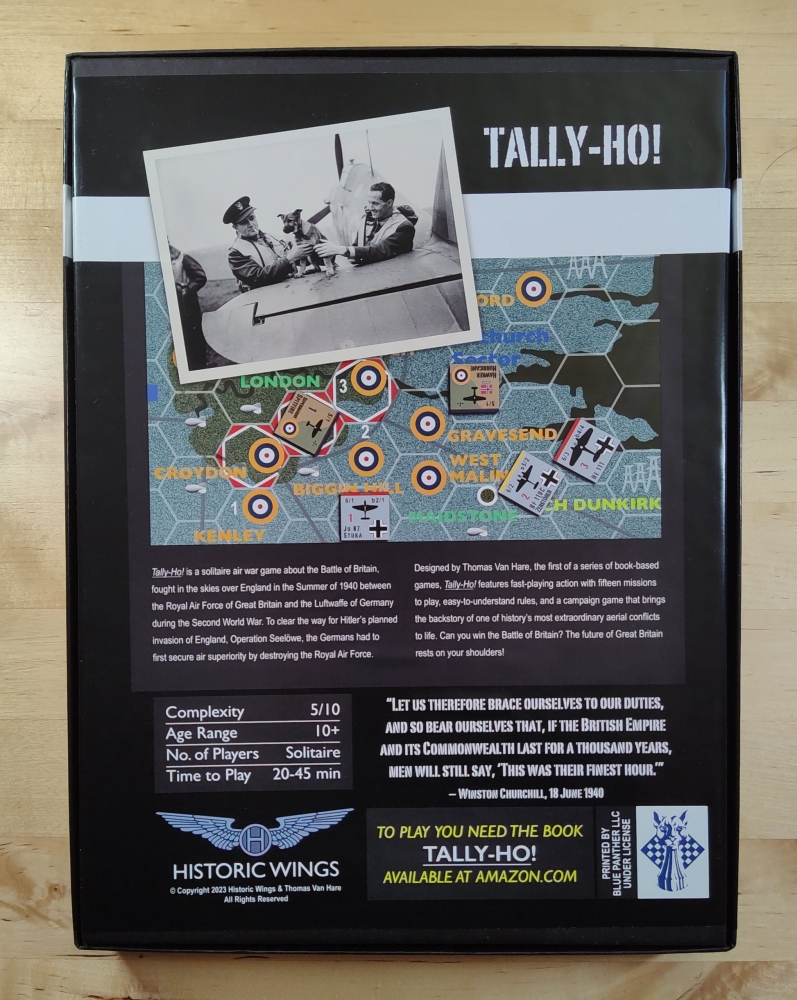 Conçu par Thomas Van Hare, Tally-Ho! propose une action rapide avec quinze missions à jouer, des règles faciles à comprendre et une campagne qui donne vie à l'histoire de l'un des conflits aériens les plus extraordinaires de l'histoire. Pouvez-vous gagner la bataille d'Angleterre ? L'avenir de la Grande-Bretagne repose sur vos épaules !