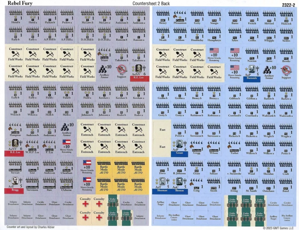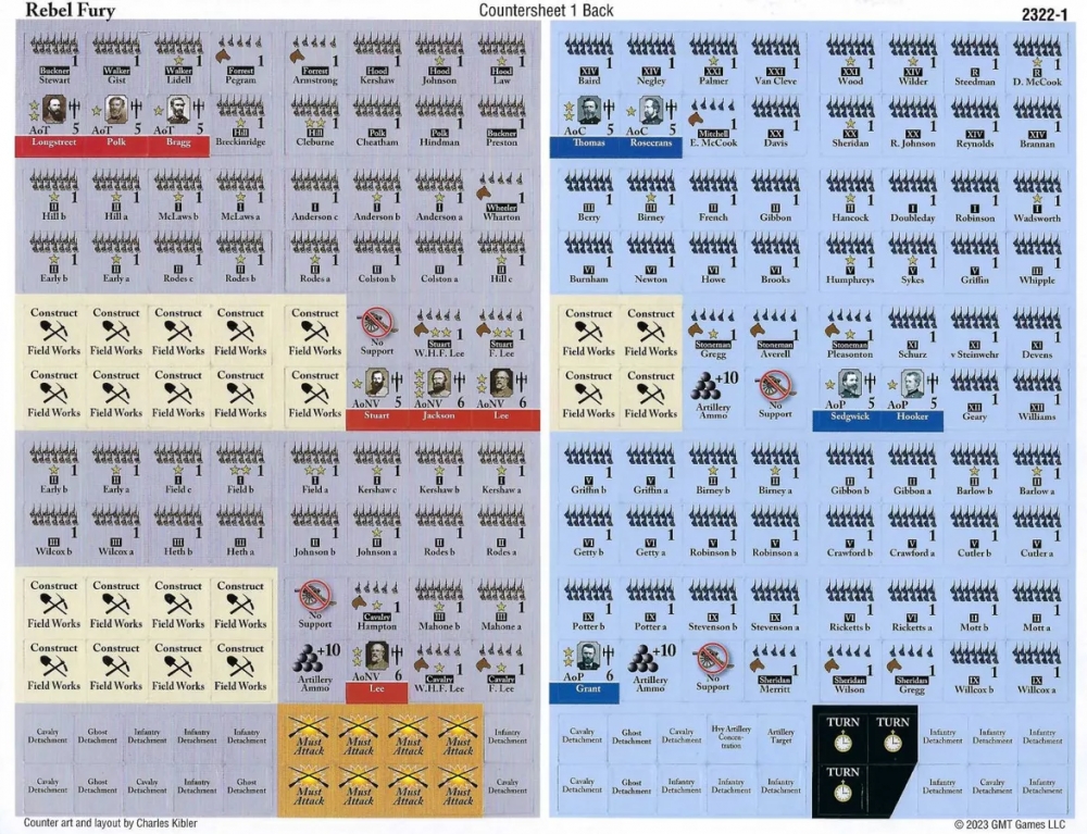 Ce jeu propose un nouveau système de combat pour la guerre civile, semblable aux anciens quadrigames de SPI, Blue & Gray. Chaque partie de Rebel Fury est rapide à mettre en place, rapide à jouer et profondément interactive. La densité des pions dans chaque scénario est faible, ce qui vous permet de voir et d'avoir une vision globale de la bataille.