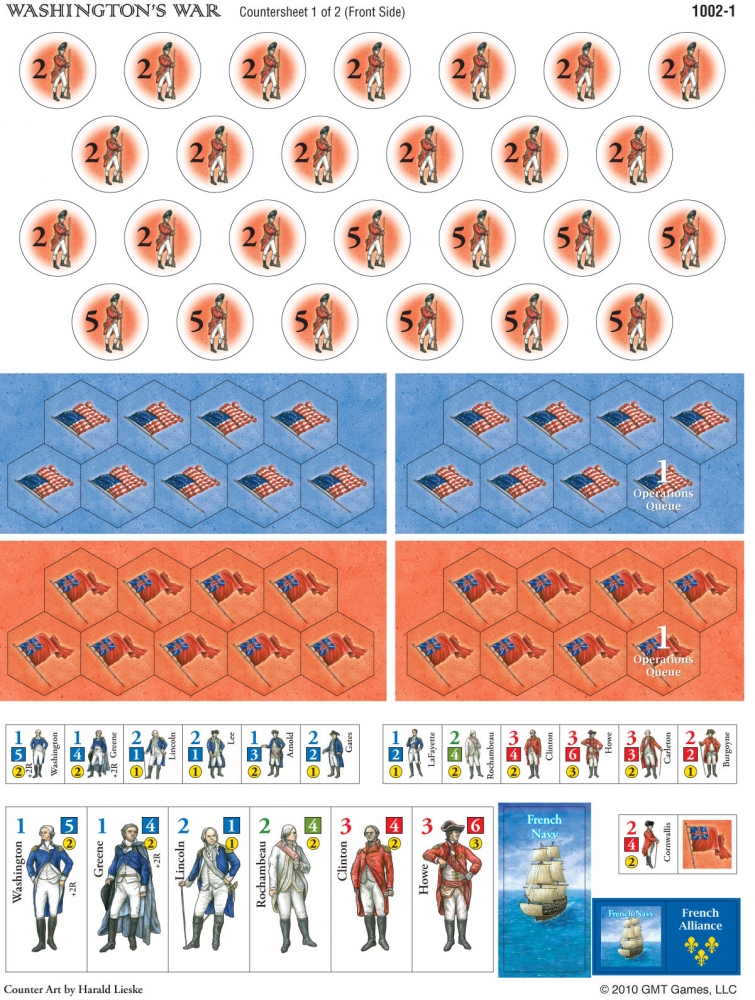 Washington’s War a été largement testé sur Internet sous forme de tournoi afin de garantir la clarté des règles sous le stress de la compétition. Ce qui était ancien est à nouveau nouveau... soyez l'homme au cheval blanc et créez une nouvelle nation, ou soyez un roi essayant de sauver son empire pendant une guerre mondiale.