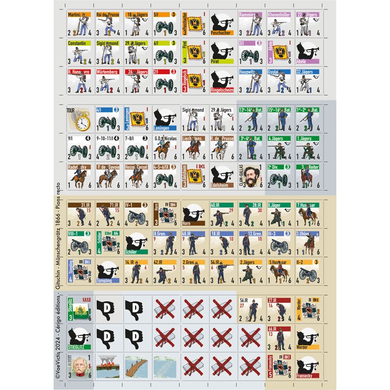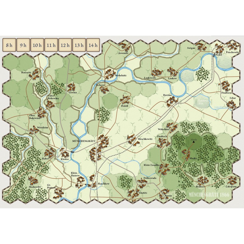 Nouveau module de la série « les Batailles au temps de Napoléon III », Münchengrätz-Gitschin est le troisième et dernier jeu de la série des batailles préliminaires de la campagne de Bohème de 1866 menant à l’affrontement majeur entre les deux puissances allemandes : la bataille de Sadowa/Königgrätz qui fera l’objet d’un grand jeu ultérieurement.