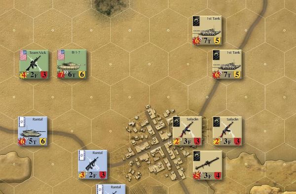Par exemple, un peloton Merkava a une puissance de feu dorée sur une explosion rouge. Par conséquent, lorsqu'il tire sur une cible dont le facteur de défense est supérieur à un bouclier doré (généralement d'autres pelotons de chars), chaque succès inflige une touche à la cible. Mais si le même peloton tire sur une unité dont le facteur de défense est supérieur à un bouclier rouge (généralement l'infanterie), il faut deux succès pour infliger une touche.