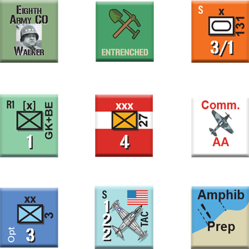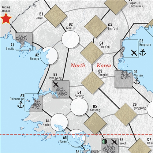 Korea: The Mobile War is a solitaire wargame covering the first year of the Korean War (July 1950 to June 1951). The game covers the critical mobile stage of the war when a decisive victory was in the cards. Historically, this phase ended in a stalemate with the front stabilized at the 38th parallel. The player controls the United Nations Command (UNC) while the game system controls Communist forces. The objective for the player is to gain the decisive victory that proved elusive in 1950-51. The game rules provide asymmetrical capabilities for each side. There are also options for the employment of additional UNC forces and US nuclear weapons. While a solitaire game, two or more players can also play Korea, each taking charge of different UNC forces.