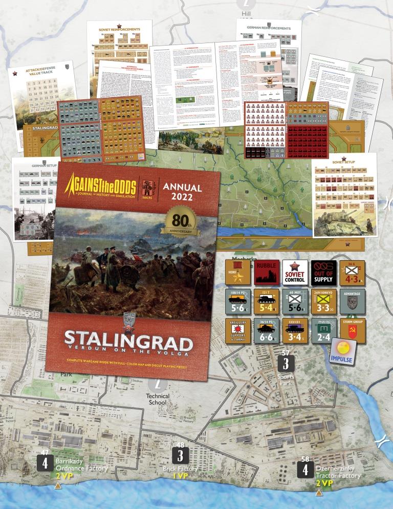 Aujourd'hui, le magazine Against the Odds a obtenu les droits de réimpression du classique Stalingrad : Verdun on the Volga de sa division sœur, Last Stand Games, avec une situation que tous les joueurs connaissent et un moteur de jeu que la plupart d'entre eux ont expérimenté... mais tous deux proposés dans un format totalement nouveau, celui du magazine annuel ATO (ziplock). (Nous l'appellerons « SVoV » en abrégé).