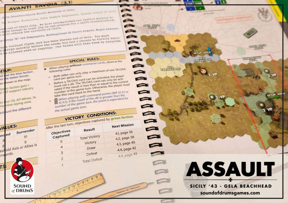 Assault Sicily ’43 est le deuxième volume d'une série de wargames tactiques dans lesquels les joueurs dirigent des unités historiques lors des opérations de débarquement et de parachutage autour de la tête de pont de Gela en juillet 1943.