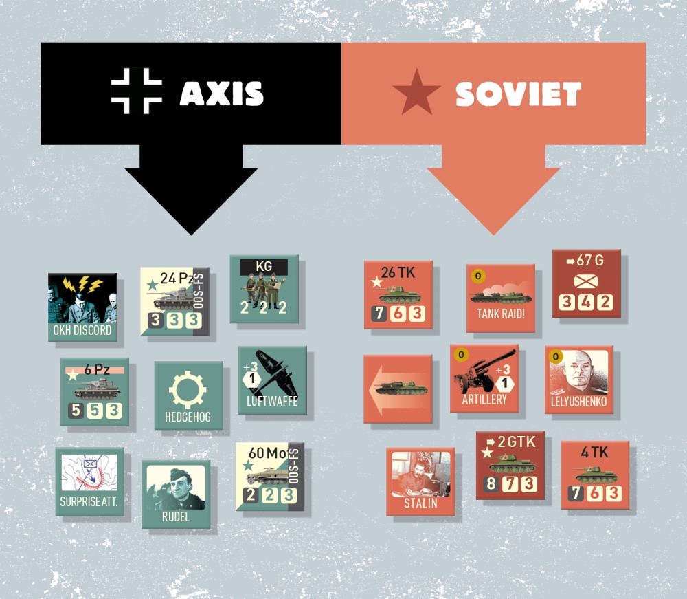 Côté Soviétique, le jeu mettra l'accent avant tout sur la planification des offensives. Le joueur disposera d'un marqueur offensive majeure et deux marqueurs offensives mineures. Ces derniers pourront être utilisés sans contrainte particulière mais généreront peu de soutiens. Le lancement d'une offensive majeure nécessitera quant à lui une planification délicate du joueur soviétique mais ses effets pourront être dévastateurs. Plusieurs autres règles concerneront le soviétique : gestion de la Stavka, déroulé de l'opération Mars, et simulation de l'essoufflement des offensives.