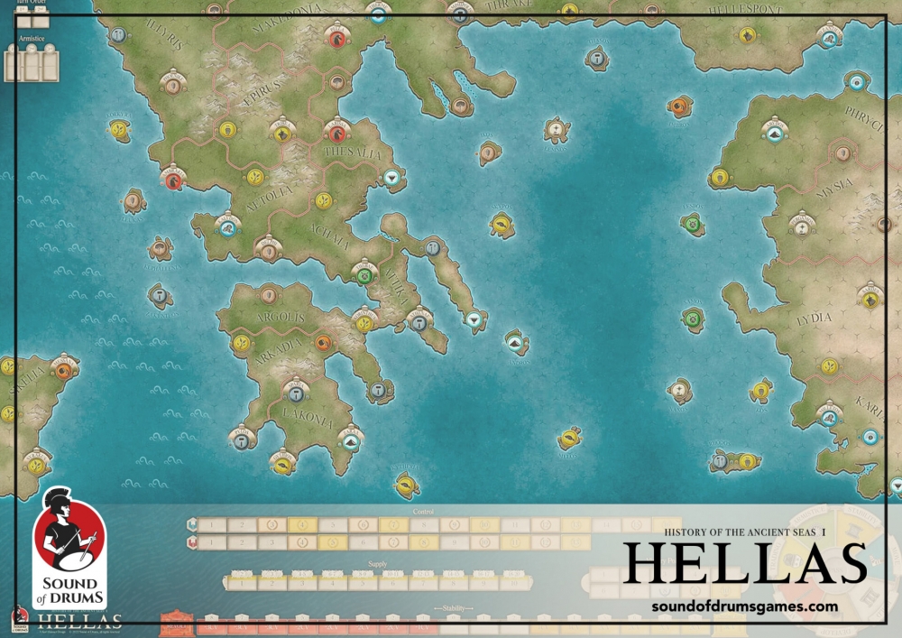 HELLAS est à l'origine un jeu pour deux joueurs, mais le bot solitaire « Archimedes » vous permet de jouer en solitaire.