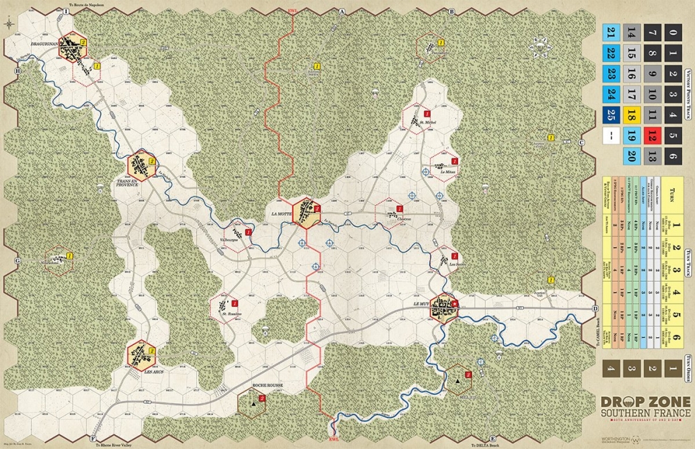 Le jeu se déroule sur un grand plateau de 86x56 cm qui détaille la zone où les parachutistes ont débarqué, à une douzaine de kilomètres derrière les plages du débarquement sur la Côte d'Azur. Le jeu peut être joué à 2, 3 ou 4 joueurs ou en solitaire (dans le rôle des Alliés).