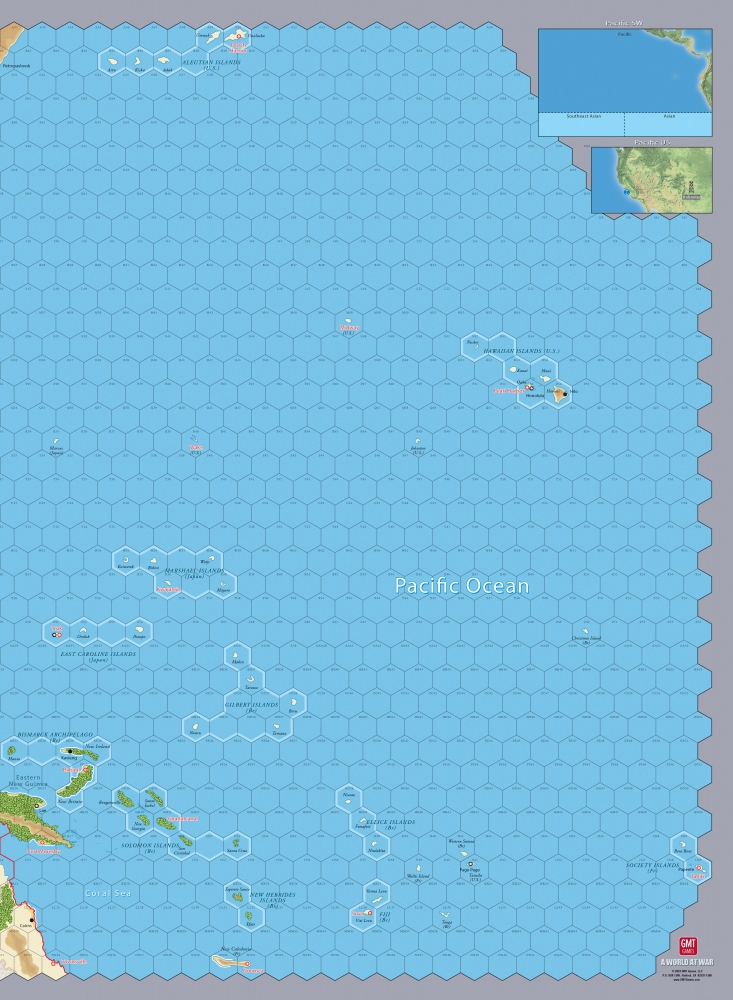 4 cartes montées pour le jeu A World at War (2 pour l'Europe, 2 pour le Pacifique)