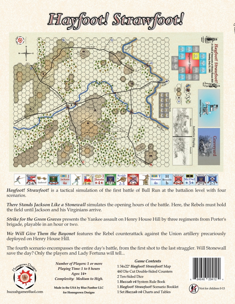 Hayfoot! Strawfoot! est un jeu de guerre qui se déroule pendant la guerre de Sécession. Il simule la première bataille de Bull Run à Manassas, en Virginie.