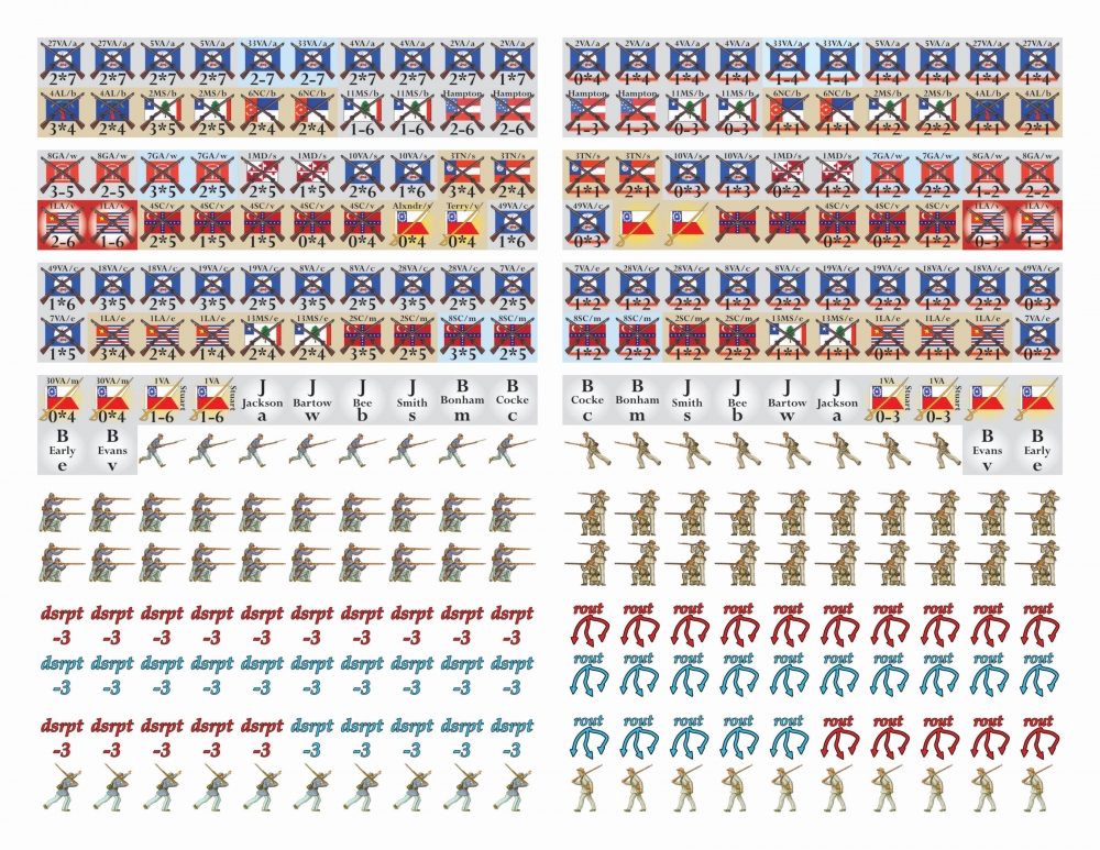 Le jeu complet présente l'ensemble de la bataille de la journée, du premier coup de feu jusqu'au dernier traînard yankee. Stonewall sauvera-t-il la mise ? Seuls les joueurs et Lady Fortuna le diront...