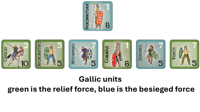 En tant que joueur gaulois : en tant que Vercingétorix, vous êtes le « commandant en chef » de la révolte gauloise contre l'oppresseur romain. Poursuivi par César et ses légions, vous vous êtes retiré dans la ville fortifiée d'Alésia.