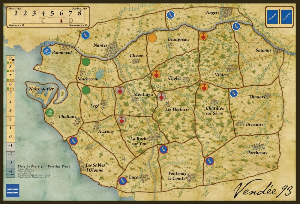 Vendée 93 est un jeu d’histoire, dirigé par les cartes, pour un ou deux joueurs, aux règles simples pouvant se jouer en deux heures. Deuxième opus de la série Under Pressure après Saigon 75, il présente plusieurs aspects innovants par rapport à son aîné: