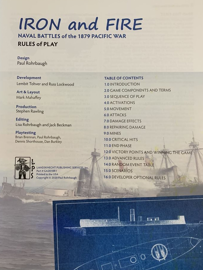 Iron and Fire est un jeu de complexité moyenne qui retrace les batailles livrées par le cuirassé péruvien Huáscar pendant la guerre du Pacifique de 1879 contre le Chili. Il surpassait tous ses adversaires, mais il n'y en avait qu'un seul (pensez au classique de science-fiction Ogre, mais cette fois-ci sur l'eau).